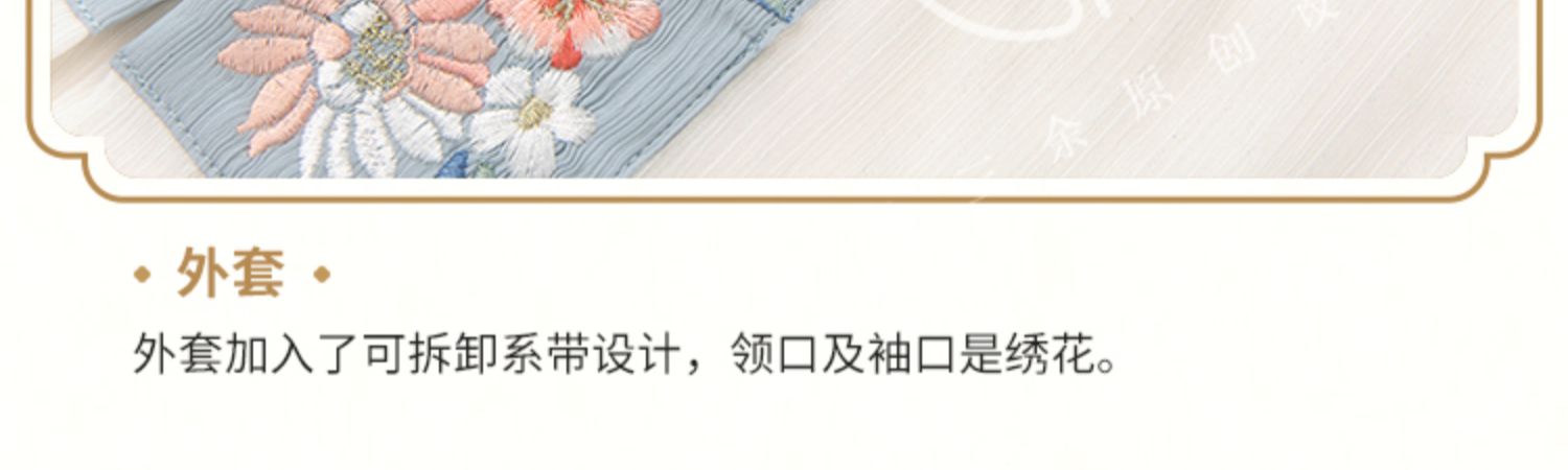 Hanfu is a handmade product, not a mass-produced product in a garment factory. In theory, there are no two completely identical Hanfu. The product details page only shows the shape of this Hanfu, especially the embroidery on the Hanfu. It is impossible for tailors to make it 100% the same. Consumers who cannot accept this please do not buy it