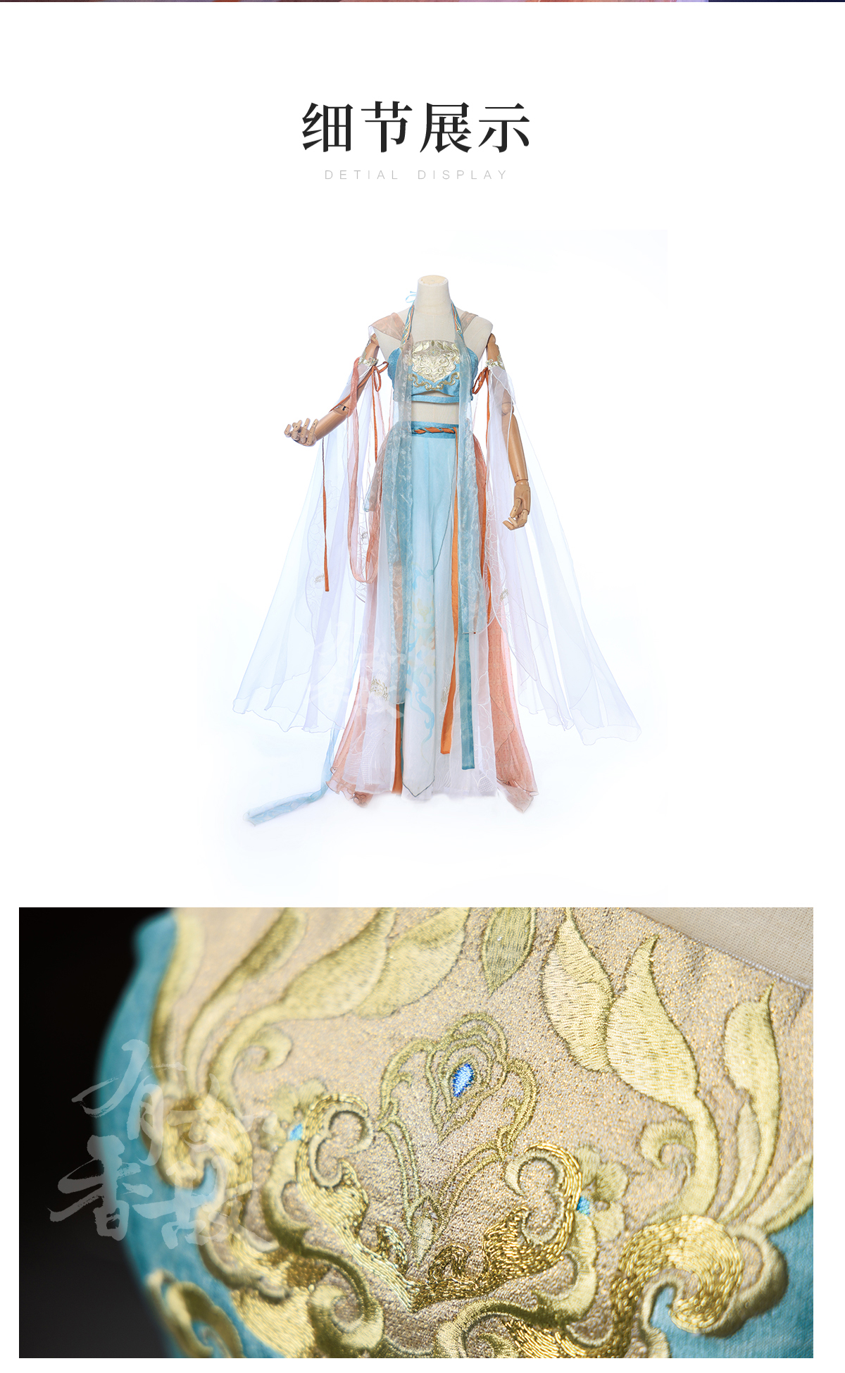 Hanfu is a handmade product, not a mass-produced product in a garment factory. In theory, there are no two completely identical Hanfu. The product details page only shows the shape of this Hanfu, especially the embroidery on the Hanfu. It is impossible for tailors to make it 100% the same. Consumers who cannot accept this please do not buy it