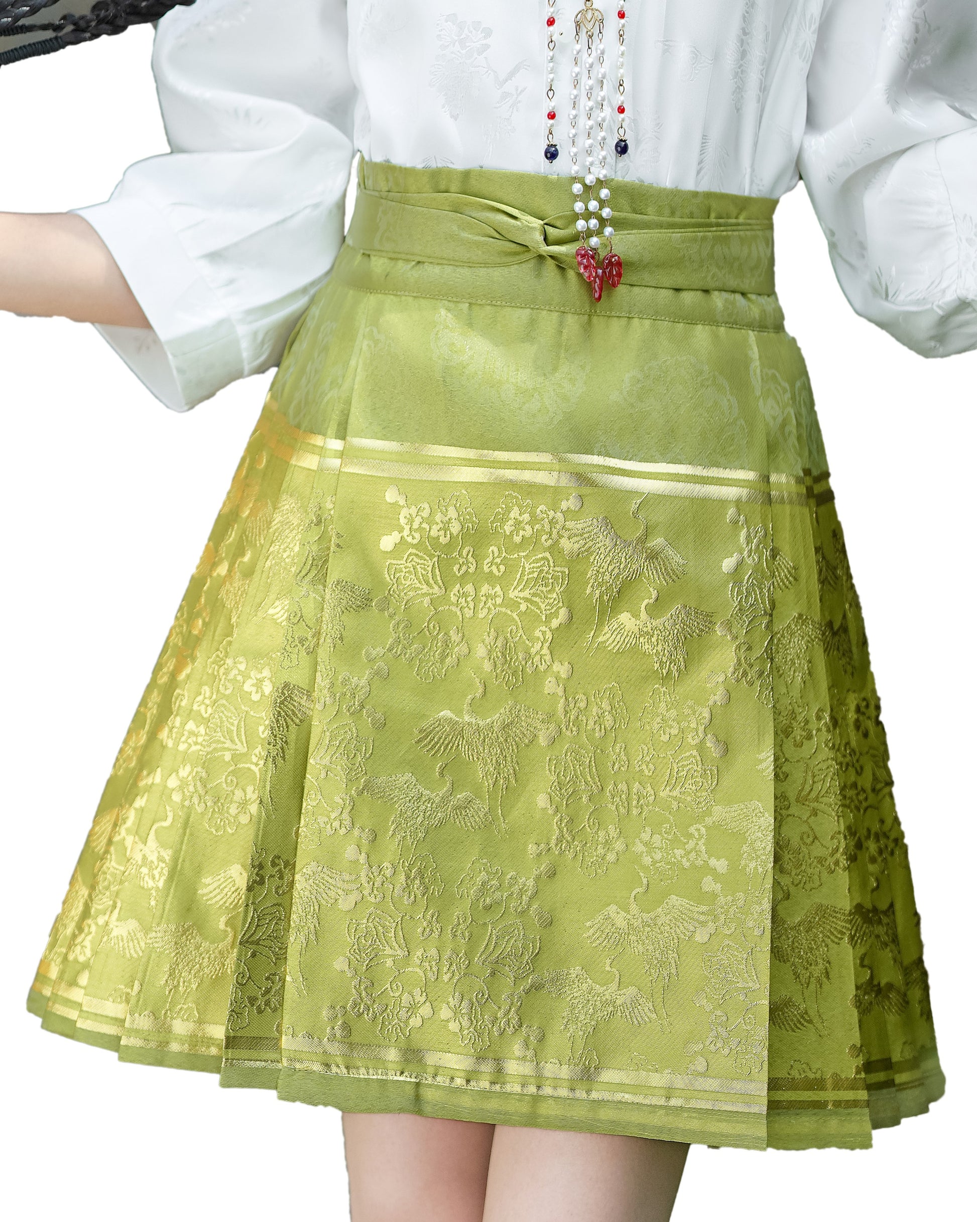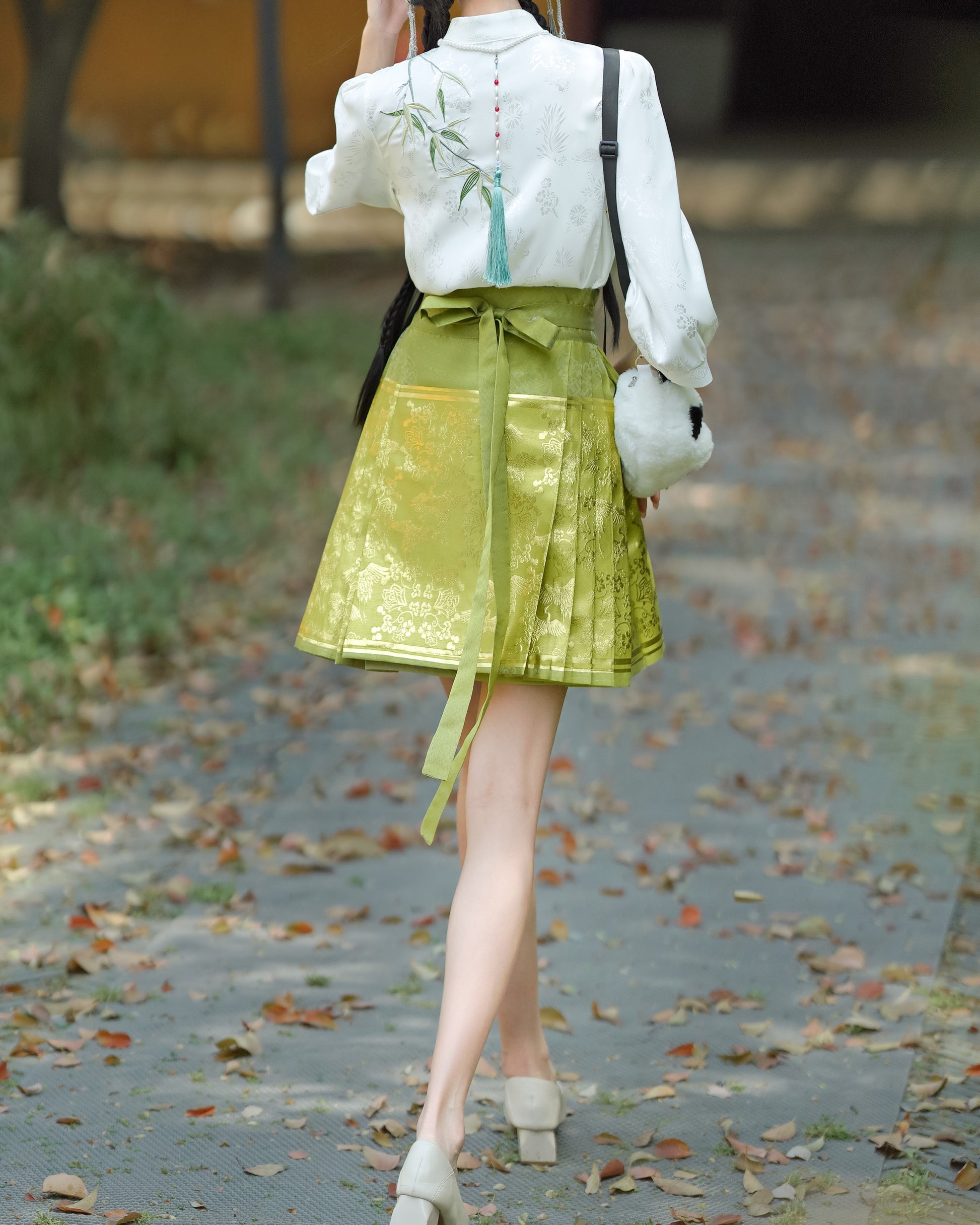 Women's Wrap Print Floral Pleated MINI Swing Skirt with Tie Knot, High Waist A-Line Casual Shape, Chinese Vintage Hanfu #2325