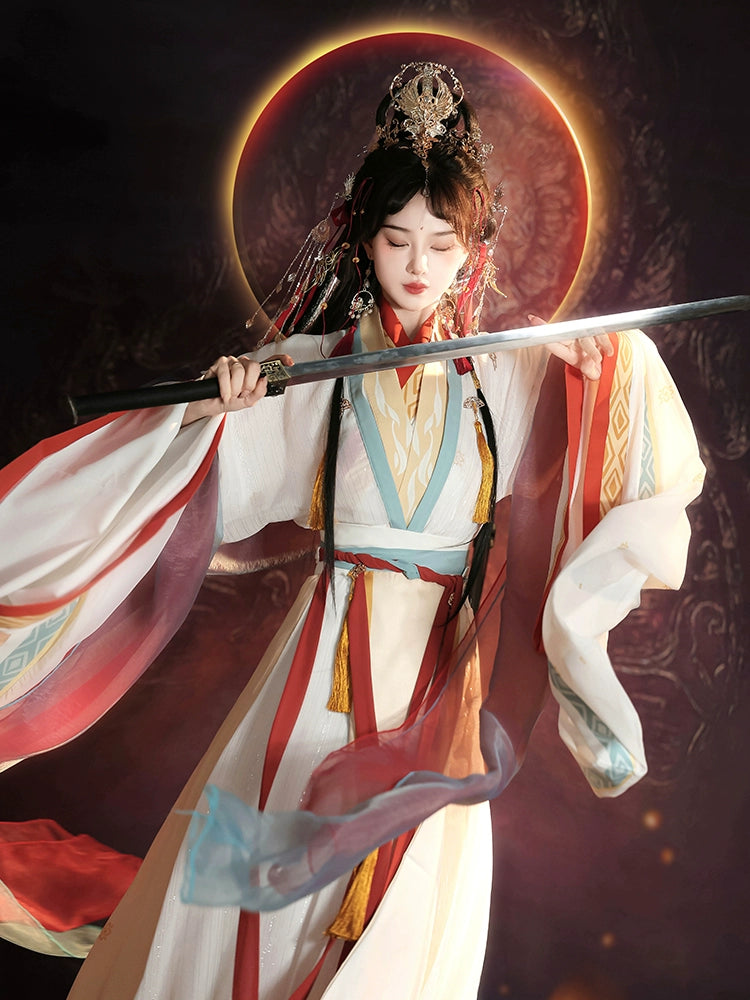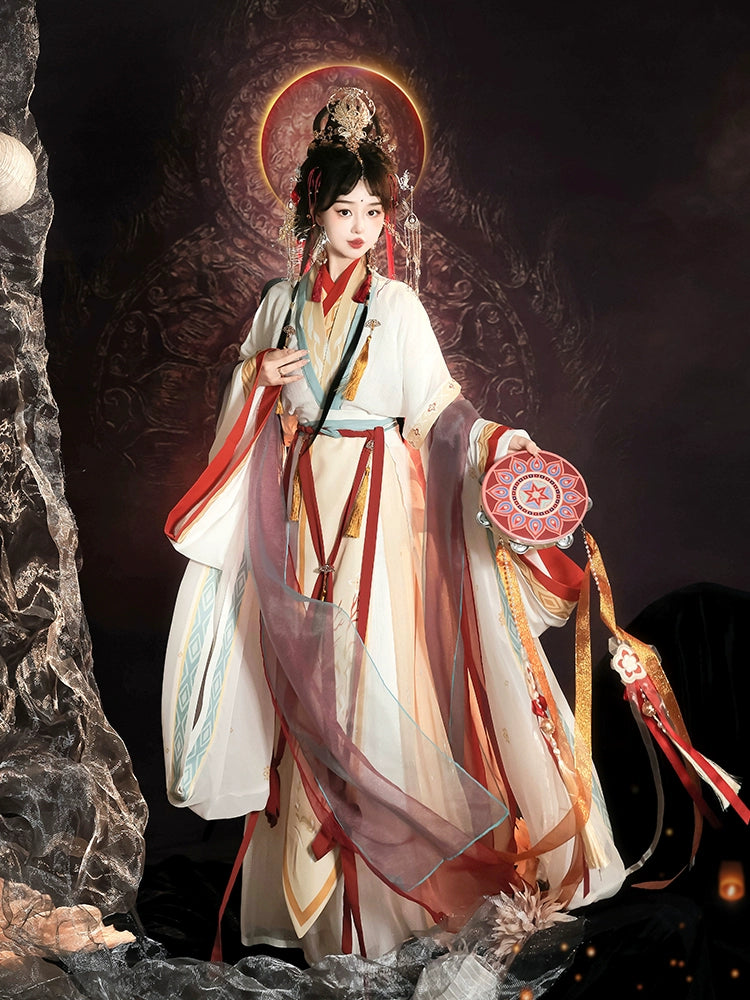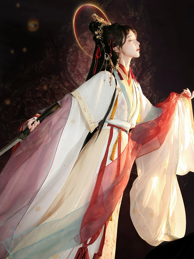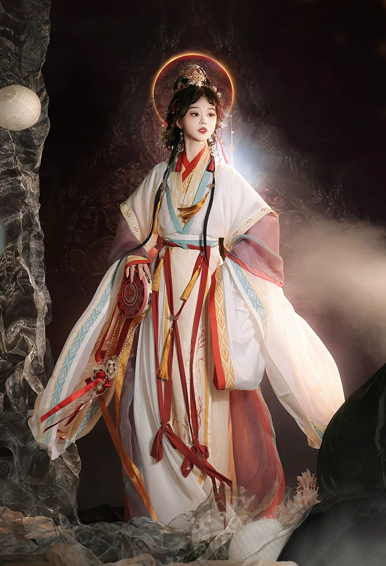 Underskirt: Upper Underskirt And Lower Skirt, Leading To The Right Collar. As The Main Form Of Hanfu, The Details Of The Underskirt Have Been Changing. Some Have A Deep Cross-Collar To The Armpits, Very Wide Sleeve Edges, The Base Of The Sleeves Is Wider Than The Cuffs, And A Waistline; Some Have A Shallow Cross-Collar, With The Base Of The Sleeves And The Width Of The Cuffs Being The Same. , Straight Sleeves With Narrow Sleeve Edges. In Addition, There Are Chest-Length Underskirts, Which Are A Style Of Underskirts Based On The Position Of The Tie. The Skirt And Lace Are Tied Above The Chest. The Hem Is Drooping And Elegant. It Can Be Divided Into Double-Breasted And Cross-Collared Styles, With The Majority Of The Skirts Being Double-Breasted.