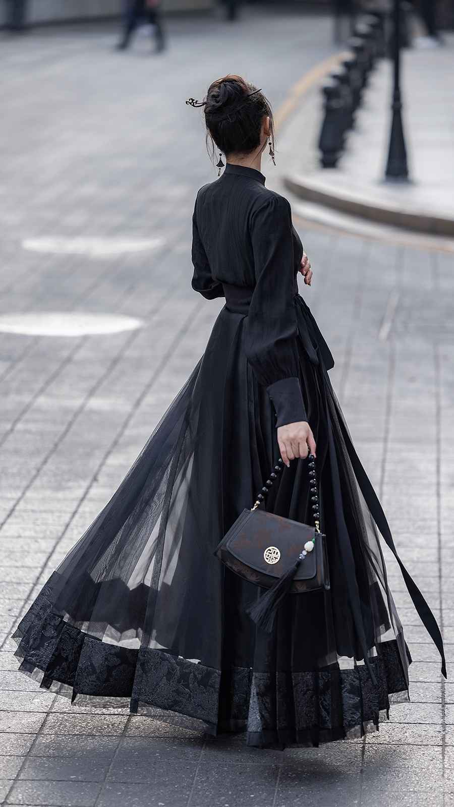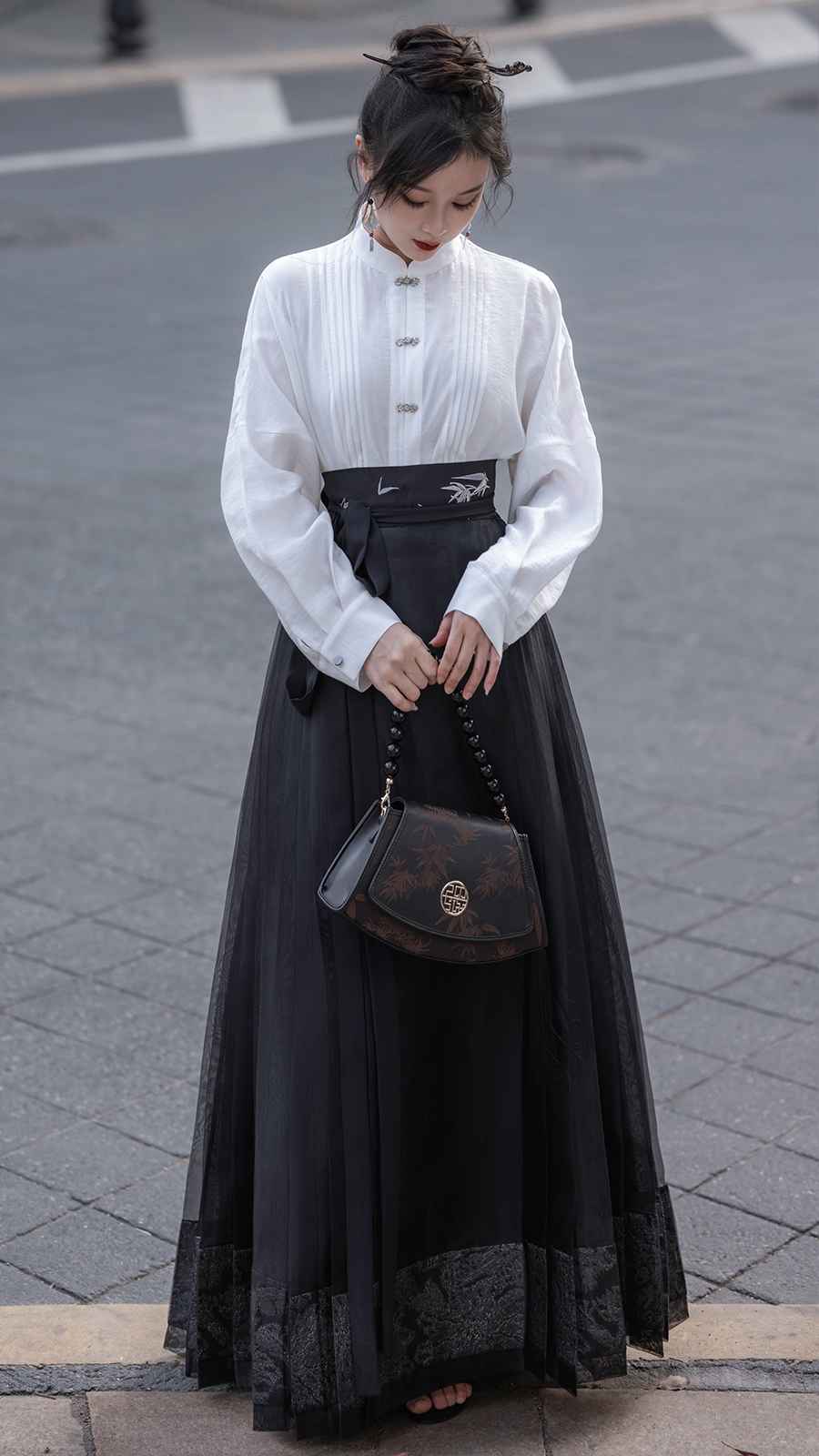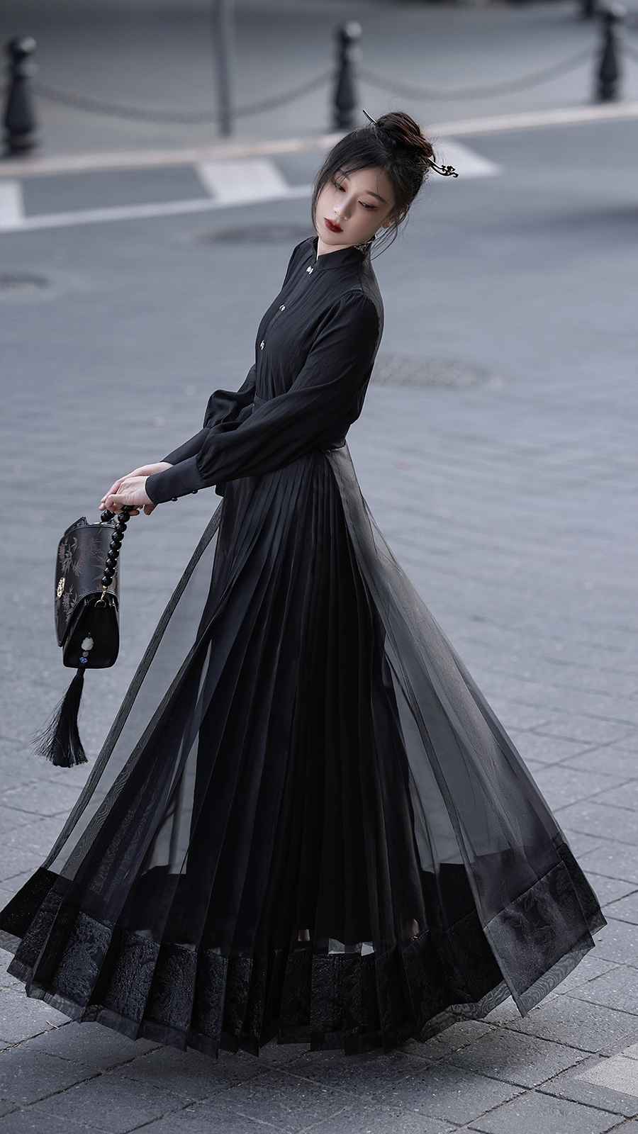 Elevate your everyday attire with our original Chinese-style commuter daily Hanfu. This ensemble features the timeless elegance of a hundred-layered black gauze horse face skirt, perfect for wearing to work during the spring and summer seasons. Embrace the essence of Chinese fashion with this contemporary yet traditional outfit, designed to make a statement wherever you go.