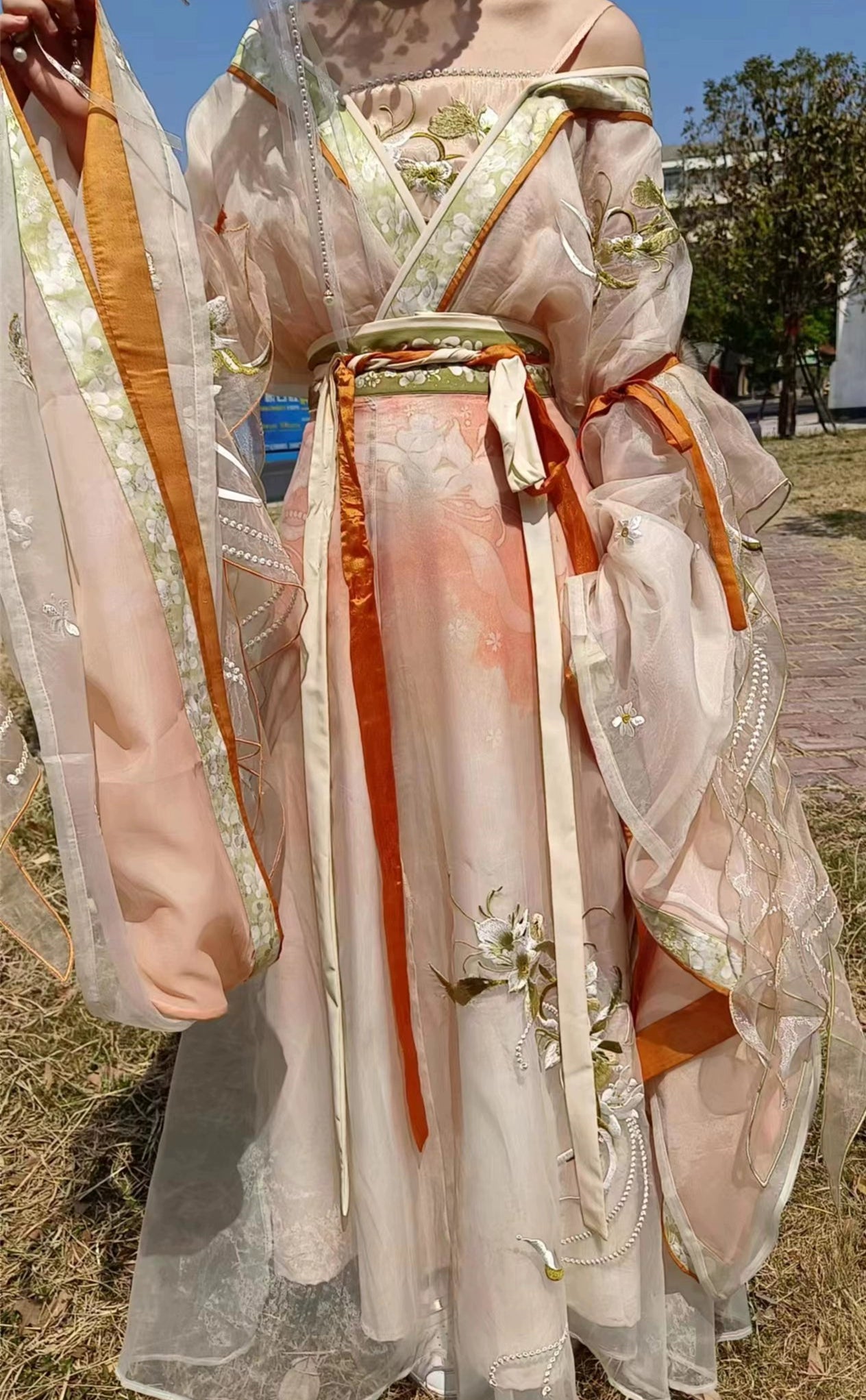 Hanfu is a handmade product, not a mass-produced product in a garment factory. In theory, there are no two completely identical Hanfu. The product details page only shows the shape of this Hanfu, especially the embroidery on the Hanfu. It is impossible for tailors to make it 100% the same. Consumers who cannot accept this please do not buy it