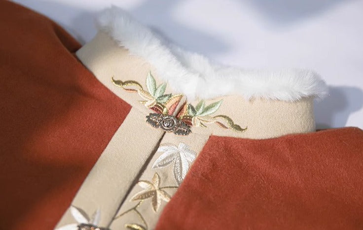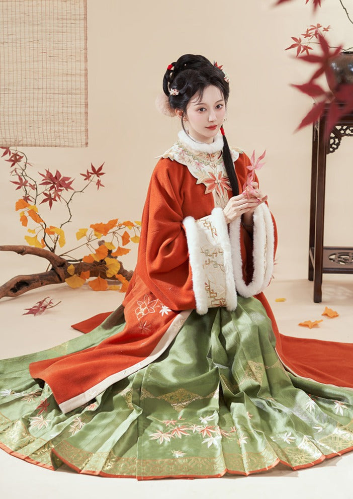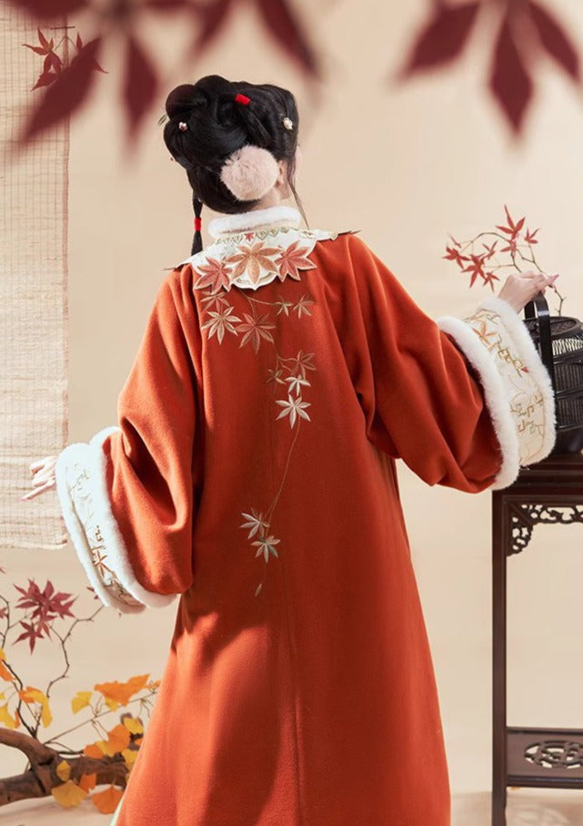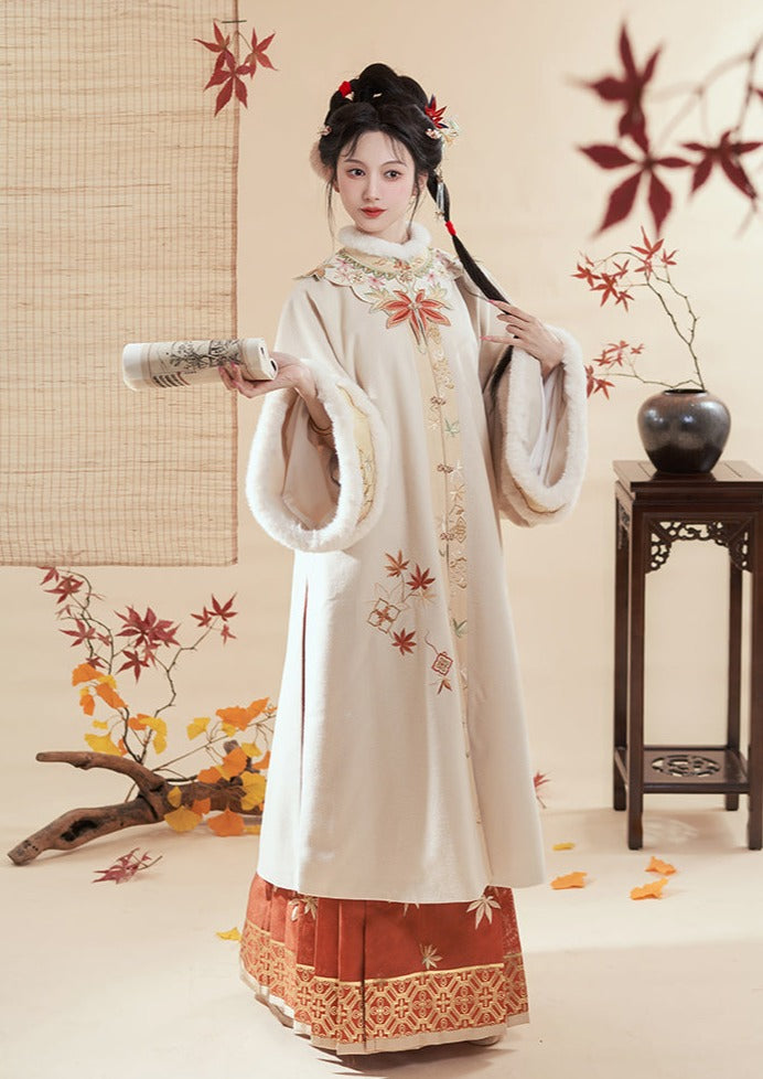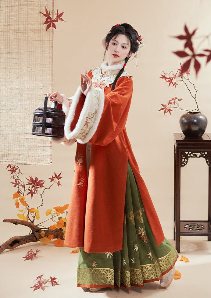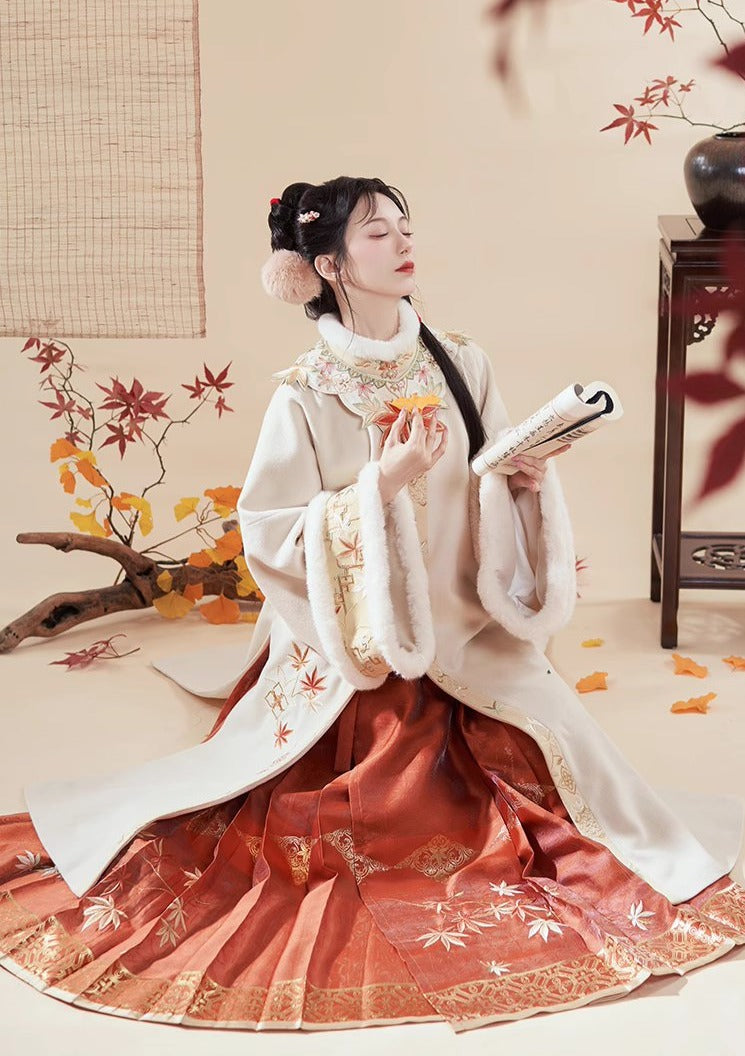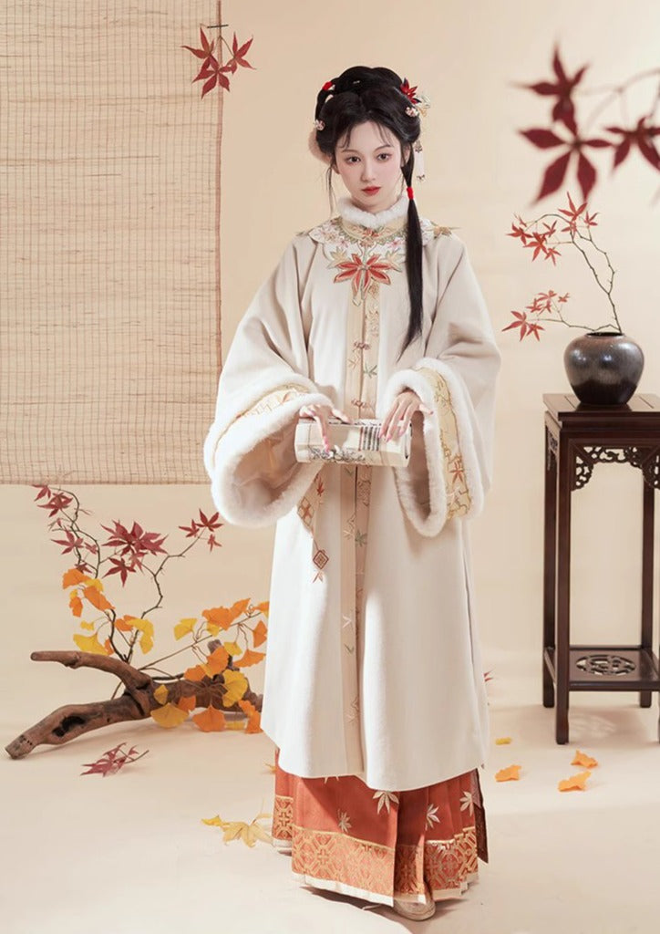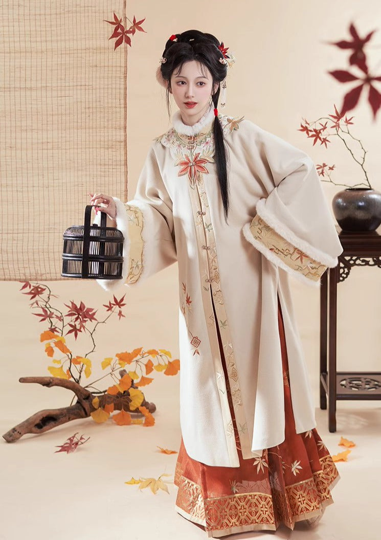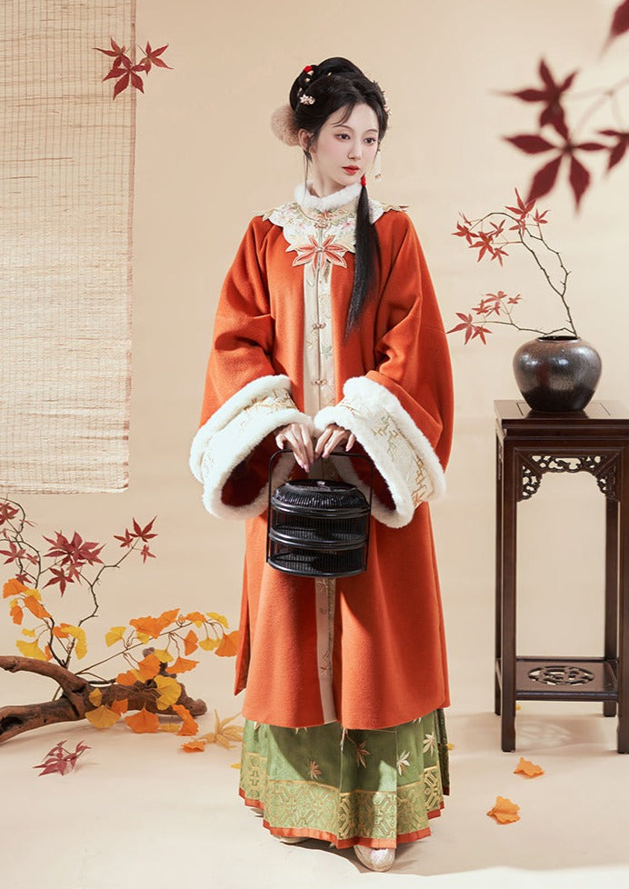 Ideal for cultural events, seasonal festivities, or simply for adding a touch of sophistication to your winter wardrobe, this Ming Dynasty inspired Hanfu ensemble is a perfect choice. Step into the beauty of ancient Chinese fashion while staying snug and stylish this winter season.