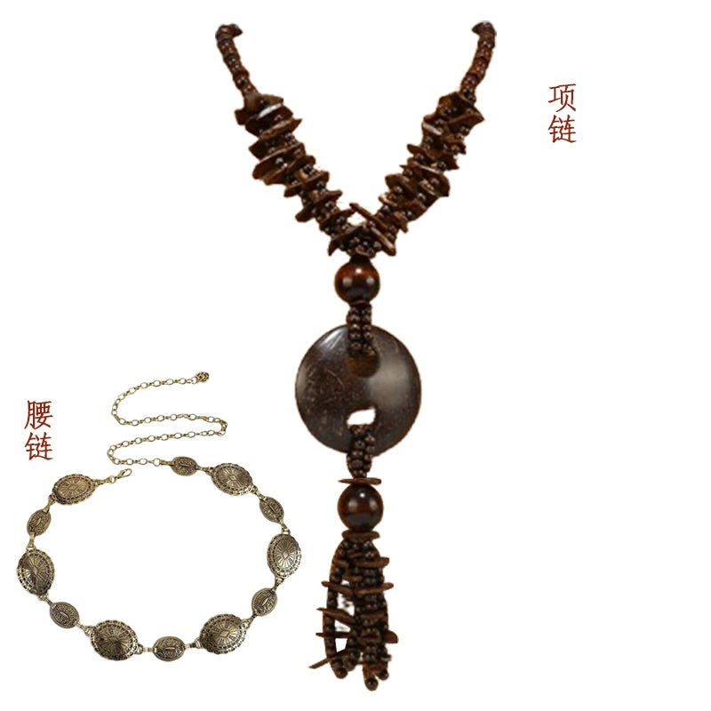 Shirt + Round-Collared Robe + Wrist Guards + Fur Coat + Ribbon Waist Rope + Necklace + Waist Chain