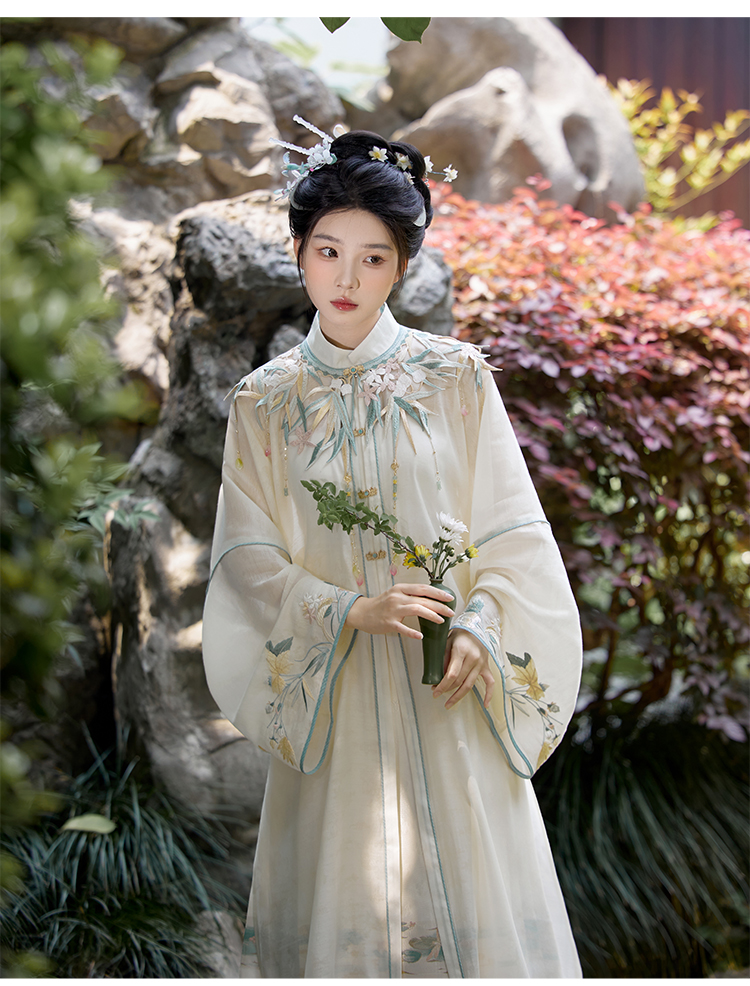 Hanfu is a handmade product, not a mass-produced product in a garment factory. In theory, there are no two completely identical Hanfu. The product details page only shows the shape of this Hanfu, especially the embroidery on the Hanfu. It is impossible for tailors to make it 100% the same. Consumers who cannot accept this please do not buy it