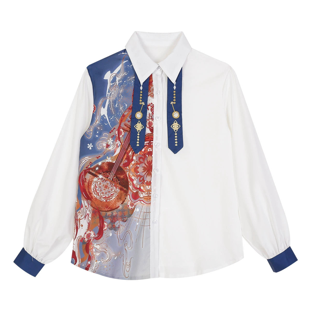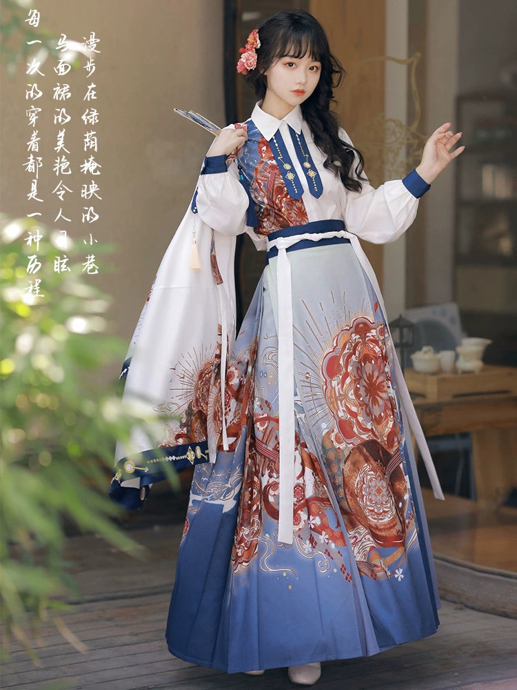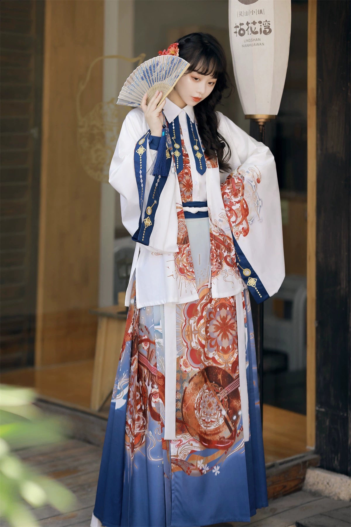 Lookbook Series Pipa Song Fashion Printed Modified Horse Face Skirt Suit