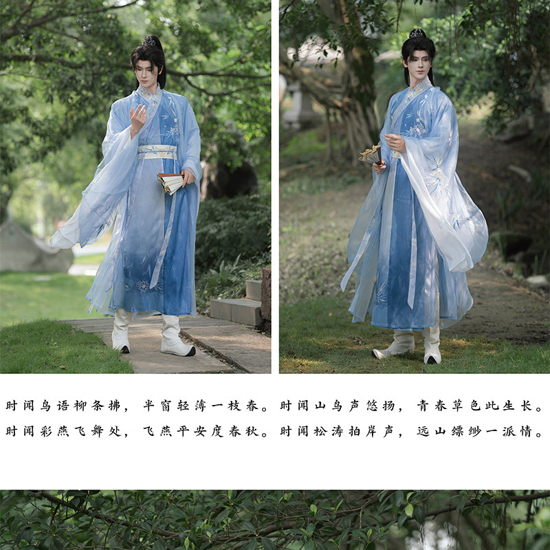 Men's Hanfu, with calm colors and upright lines, highlights the masculine style and is suitable for solemn celebrations; gender-neutral Hanfu, with fresh colors and universal design, breaks gender boundaries and is suitable for a variety of occasions. Whether you are a gentleman seeking traditional charm or a boundless explorer pursuing individual expression, our Hanfu series can meet your needs, allowing you to feel the unique charm of traditional culture and the perfect fusion of modern aesthetics every time you wear it.