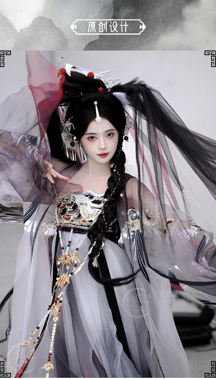 Immerse yourself in the enchanting world of ancient Chinese mythology with our Mythical Series Original Heavy Embroidery Large Sleeve Hanfu with Qi Chest Skirt and Train for Women. This extraordinary ensemble is a testament to the elegance and grandeur of traditional Chinese fashion, meticulously crafted to capture the essence of mythological beauty and grace.