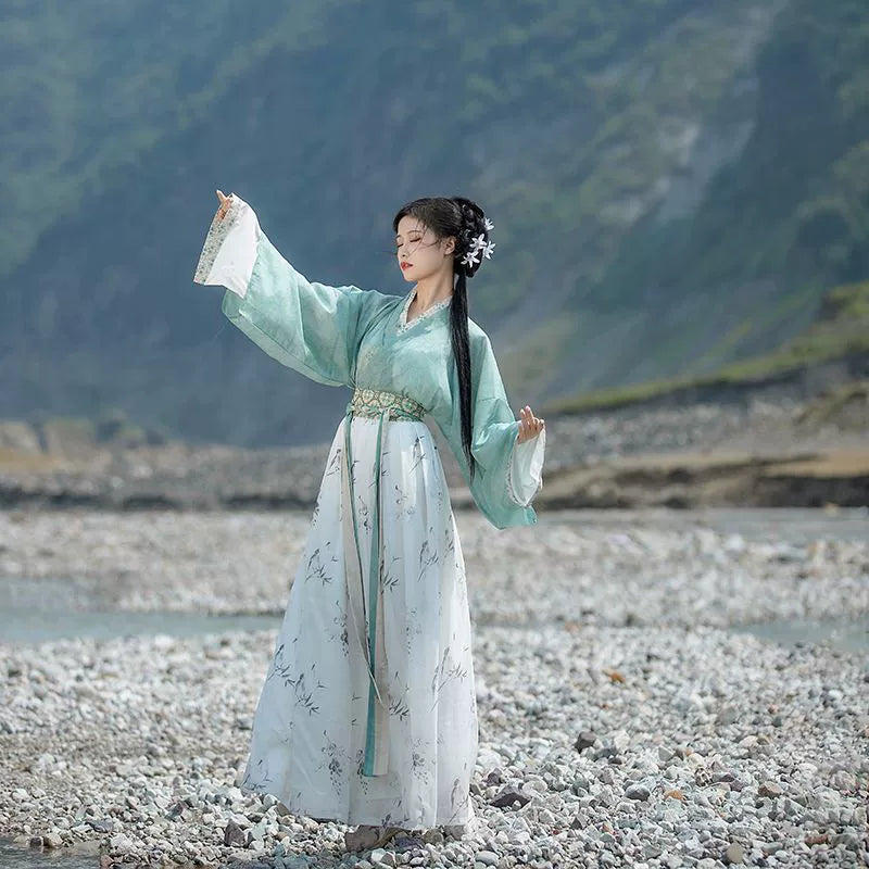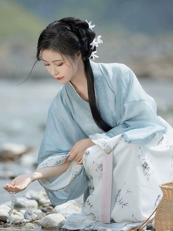 Original Wei Jin Style Hanfu Restoration Cross-Collar Waist Skirt
