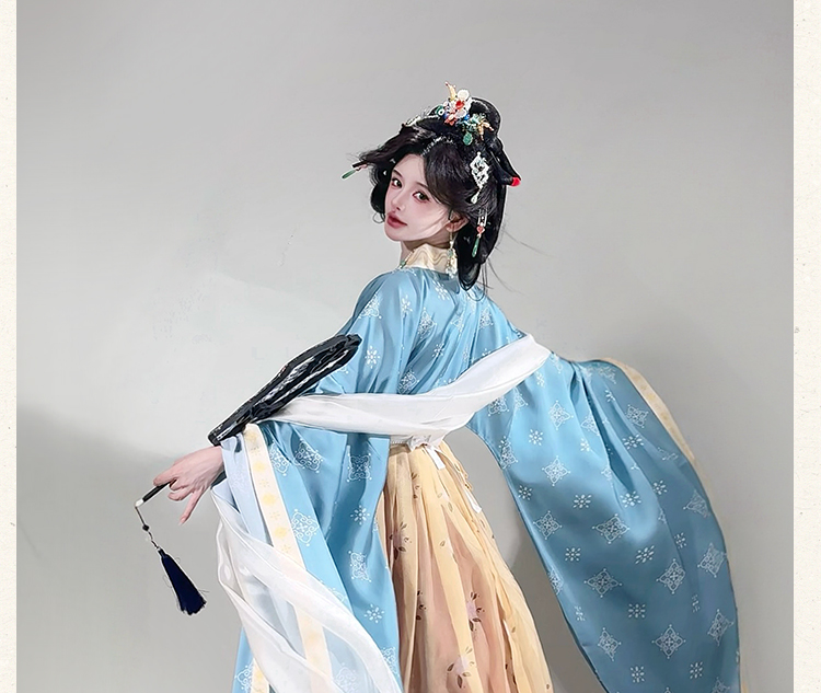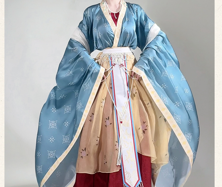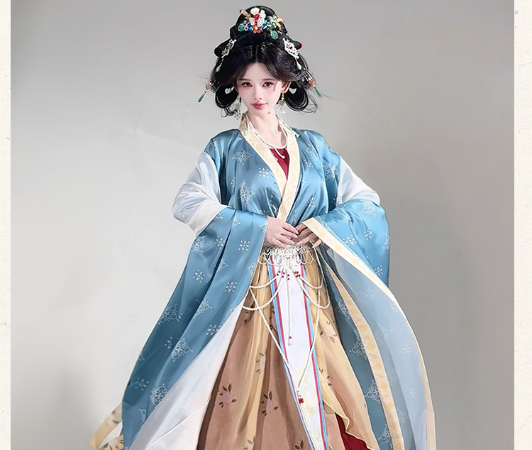 "Silk Road Reverie: Hanfu's Odyssey Through Ethnic Kaleidoscope", your fingers trace the Tang Dynasty roundel-patterned robe, suddenly discovering Sogdian ciphertext hidden in the sleeves—this is the original "Huxuan Dance Gown" An Lushan presented to Yang Guifei, the Persian craftsman whispers, "The lotus paste in this mooncake hides a Sogdian map... Follow the cumin-scented threads." When your gold-sprinkled silk shawl touches the artist's yak-hair brush, Tibetan script from the "Tubo Alliance Stele" emerges, "When Princess Wencheng's silk skirts met Tibetan wool, the Yarlung Tsangpo turned to liquid damask." Under UV light, hemline reveals Guge Kingdom mandala paintings. A Khotanese muralist tugs your sash, "Your 'lion motif' is actually our 'pomegranate dance pattern'!" Hanfu's jia xie resist-dyeing shares roots with Uyghur abrabandi tie-dye. A saukele headdress artisan transforms your bronze belt into modular instruments, left hook holding a Mongolian tovshuur lute, right loop carrying a Tajik eagle-bone flute, centerpiece displaying Xianbei gilded horse ornament, metal components auto-playing Kuchean-Twelve Muqam fusion under full moon. Under grapevines, a Ningxia embroiderer gasps at your "mountain-wave" pattern, "These 'peaks' mirror Helan Mountains, the 'surges' recreate Yellow River eddies!" Pleats woven with Tangut "Pearl in Palm" fragments become scannable with phones. As the Kyrgyz shaman's drum echoes, your composite-flower motifs morph into Yi solar calendar constellations, Khitan death mask filigree, Jurchen sea-eagle feather iridescence, unbuttoning the collar reveals Genghis Khan's multilingual travel permit. QR codes reveal 22 ethnic groups' textile DNA, body heat releases cinnamon/saffron scent capsules, sleeves extend into Mongolian wrestling sashes, each label includes Yi shaman-blessed silver plaque, Zhuang bronze drum soundwave QR, Evenki reindeer tendon thread sample. The capsule collection features Qinghai yak-down woven into Tang transparent-back gauze lined with Yangbajing geothermal film, Xianbei saddle-shaped girdle detaching into Kazakh dombra, Li barkcloth combined with Minnan mermaid silk revealing Zheng He's nautical charts when wet—"This isn't clothing—it's a UNESCO site you can wear to brunch." The cultural codex spans Dai palm-leaf sutra patterns thermo-chromically displaying Water Festival blessings, She mountain songs powering LEDs through friction, Hezhe fish-skin seams GPS-tagging Amur fishing seasons, inviting deeper exploration of Qiang watchtower stone patterns or Daur hockey elements fused with Tang polo robes.