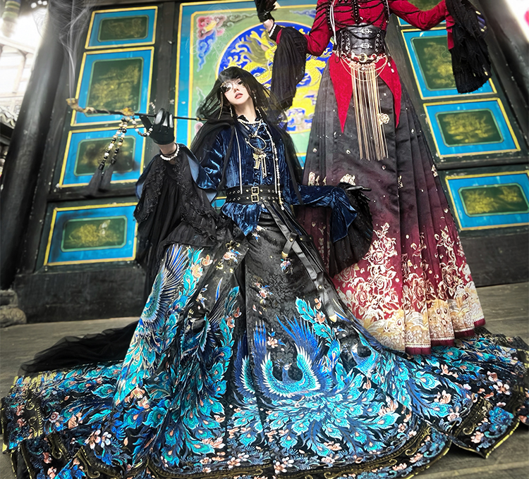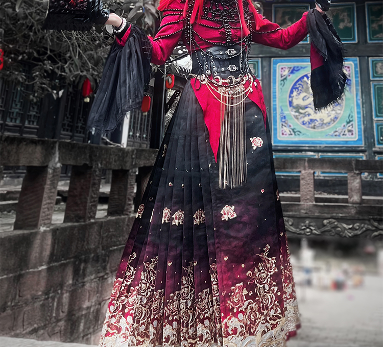 "Silk Road Reverie: Hanfu's Odyssey Through Ethnic Kaleidoscope", your fingers trace the Tang Dynasty roundel-patterned robe, suddenly discovering Sogdian ciphertext hidden in the sleeves—this is the original "Huxuan Dance Gown" An Lushan presented to Yang Guifei, the Persian craftsman whispers, "The lotus paste in this mooncake hides a Sogdian map... Follow the cumin-scented threads." When your gold-sprinkled silk shawl touches the artist's yak-hair brush, Tibetan script from the "Tubo Alliance Stele" emerges, "When Princess Wencheng's silk skirts met Tibetan wool, the Yarlung Tsangpo turned to liquid damask." Under UV light, hemline reveals Guge Kingdom mandala paintings. A Khotanese muralist tugs your sash, "Your 'lion motif' is actually our 'pomegranate dance pattern'!" Hanfu's jia xie resist-dyeing shares roots with Uyghur abrabandi tie-dye. A saukele headdress artisan transforms your bronze belt into modular instruments, left hook holding a Mongolian tovshuur lute, right loop carrying a Tajik eagle-bone flute, centerpiece displaying Xianbei gilded horse ornament, metal components auto-playing Kuchean-Twelve Muqam fusion under full moon. Under grapevines, a Ningxia embroiderer gasps at your "mountain-wave" pattern, "These 'peaks' mirror Helan Mountains, the 'surges' recreate Yellow River eddies!" Pleats woven with Tangut "Pearl in Palm" fragments become scannable with phones. As the Kyrgyz shaman's drum echoes, your composite-flower motifs morph into Yi solar calendar constellations, Khitan death mask filigree, Jurchen sea-eagle feather iridescence, unbuttoning the collar reveals Genghis Khan's multilingual travel permit. QR codes reveal 22 ethnic groups' textile DNA, body heat releases cinnamon/saffron scent capsules, sleeves extend into Mongolian wrestling sashes, each label includes Yi shaman-blessed silver plaque, Zhuang bronze drum soundwave QR, Evenki reindeer tendon thread sample. The capsule collection features Qinghai yak-down woven into Tang transparent-back gauze lined with Yangbajing geothermal film, Xianbei saddle-shaped girdle detaching into Kazakh dombra, Li barkcloth combined with Minnan mermaid silk revealing Zheng He's nautical charts when wet—"This isn't clothing—it's a UNESCO site you can wear to brunch." The cultural codex spans Dai palm-leaf sutra patterns thermo-chromically displaying Water Festival blessings, She mountain songs powering LEDs through friction, Hezhe fish-skin seams GPS-tagging Amur fishing seasons, inviting deeper exploration of Qiang watchtower stone patterns or Daur hockey elements fused with Tang polo robes.