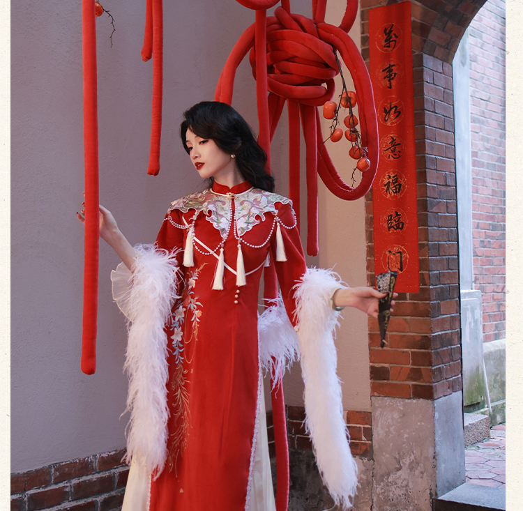 "Silk Road Reverie: Hanfu's Odyssey Through Ethnic Kaleidoscope", your fingers trace the Tang Dynasty roundel-patterned robe, suddenly discovering Sogdian ciphertext hidden in the sleeves—this is the original "Huxuan Dance Gown" An Lushan presented to Yang Guifei, the Persian craftsman whispers, "The lotus paste in this mooncake hides a Sogdian map... Follow the cumin-scented threads." When your gold-sprinkled silk shawl touches the artist's yak-hair brush, Tibetan script from the "Tubo Alliance Stele" emerges, "When Princess Wencheng's silk skirts met Tibetan wool, the Yarlung Tsangpo turned to liquid damask." Under UV light, hemline reveals Guge Kingdom mandala paintings. A Khotanese muralist tugs your sash, "Your 'lion motif' is actually our 'pomegranate dance pattern'!" Hanfu's jia xie resist-dyeing shares roots with Uyghur abrabandi tie-dye. A saukele headdress artisan transforms your bronze belt into modular instruments, left hook holding a Mongolian tovshuur lute, right loop carrying a Tajik eagle-bone flute, centerpiece displaying Xianbei gilded horse ornament, metal components auto-playing Kuchean-Twelve Muqam fusion under full moon. Under grapevines, a Ningxia embroiderer gasps at your "mountain-wave" pattern, "These 'peaks' mirror Helan Mountains, the 'surges' recreate Yellow River eddies!" Pleats woven with Tangut "Pearl in Palm" fragments become scannable with phones. As the Kyrgyz shaman's drum echoes, your composite-flower motifs morph into Yi solar calendar constellations, Khitan death mask filigree, Jurchen sea-eagle feather iridescence, unbuttoning the collar reveals Genghis Khan's multilingual travel permit. QR codes reveal 22 ethnic groups' textile DNA, body heat releases cinnamon/saffron scent capsules, sleeves extend into Mongolian wrestling sashes, each label includes Yi shaman-blessed silver plaque, Zhuang bronze drum soundwave QR, Evenki reindeer tendon thread sample. The capsule collection features Qinghai yak-down woven into Tang transparent-back gauze lined with Yangbajing geothermal film, Xianbei saddle-shaped girdle detaching into Kazakh dombra, Li barkcloth combined with Minnan mermaid silk revealing Zheng He's nautical charts when wet—"This isn't clothing—it's a UNESCO site you can wear to brunch." The cultural codex spans Dai palm-leaf sutra patterns thermo-chromically displaying Water Festival blessings, She mountain songs powering LEDs through friction, Hezhe fish-skin seams GPS-tagging Amur fishing seasons, inviting deeper exploration of Qiang watchtower stone patterns or Daur hockey elements fused with Tang polo robes.