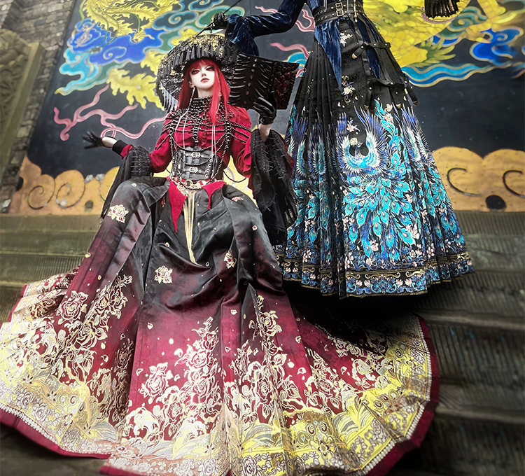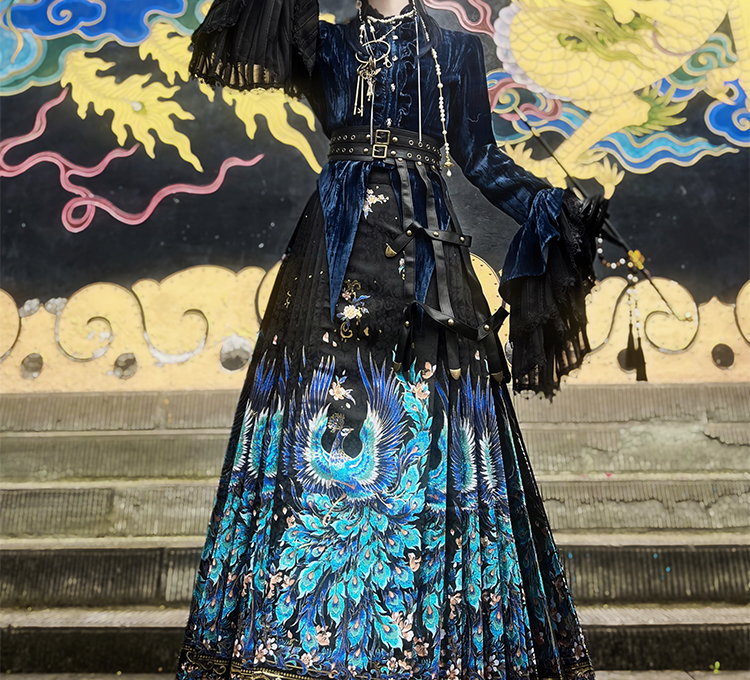 "Silk Road Reverie: Hanfu's Odyssey Through Ethnic Kaleidoscope", your fingers trace the Tang Dynasty roundel-patterned robe, suddenly discovering Sogdian ciphertext hidden in the sleeves—this is the original "Huxuan Dance Gown" An Lushan presented to Yang Guifei, the Persian craftsman whispers, "The lotus paste in this mooncake hides a Sogdian map... Follow the cumin-scented threads." When your gold-sprinkled silk shawl touches the artist's yak-hair brush, Tibetan script from the "Tubo Alliance Stele" emerges, "When Princess Wencheng's silk skirts met Tibetan wool, the Yarlung Tsangpo turned to liquid damask." Under UV light, hemline reveals Guge Kingdom mandala paintings. A Khotanese muralist tugs your sash, "Your 'lion motif' is actually our 'pomegranate dance pattern'!" Hanfu's jia xie resist-dyeing shares roots with Uyghur abrabandi tie-dye. A saukele headdress artisan transforms your bronze belt into modular instruments, left hook holding a Mongolian tovshuur lute, right loop carrying a Tajik eagle-bone flute, centerpiece displaying Xianbei gilded horse ornament, metal components auto-playing Kuchean-Twelve Muqam fusion under full moon. Under grapevines, a Ningxia embroiderer gasps at your "mountain-wave" pattern, "These 'peaks' mirror Helan Mountains, the 'surges' recreate Yellow River eddies!" Pleats woven with Tangut "Pearl in Palm" fragments become scannable with phones. As the Kyrgyz shaman's drum echoes, your composite-flower motifs morph into Yi solar calendar constellations, Khitan death mask filigree, Jurchen sea-eagle feather iridescence, unbuttoning the collar reveals Genghis Khan's multilingual travel permit. QR codes reveal 22 ethnic groups' textile DNA, body heat releases cinnamon/saffron scent capsules, sleeves extend into Mongolian wrestling sashes, each label includes Yi shaman-blessed silver plaque, Zhuang bronze drum soundwave QR, Evenki reindeer tendon thread sample. The capsule collection features Qinghai yak-down woven into Tang transparent-back gauze lined with Yangbajing geothermal film, Xianbei saddle-shaped girdle detaching into Kazakh dombra, Li barkcloth combined with Minnan mermaid silk revealing Zheng He's nautical charts when wet—"This isn't clothing—it's a UNESCO site you can wear to brunch." The cultural codex spans Dai palm-leaf sutra patterns thermo-chromically displaying Water Festival blessings, She mountain songs powering LEDs through friction, Hezhe fish-skin seams GPS-tagging Amur fishing seasons, inviting deeper exploration of Qiang watchtower stone patterns or Daur hockey elements fused with Tang polo robes.
