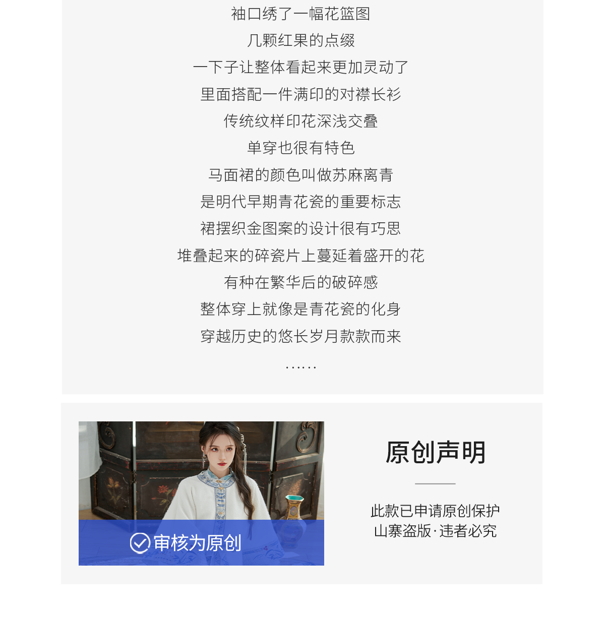 Each stitch carries legacy. Wear a Tang collar and you drape yourself in poetry. Choose Ming-inspired brocade, and you weave into a 600-year-old craft.
