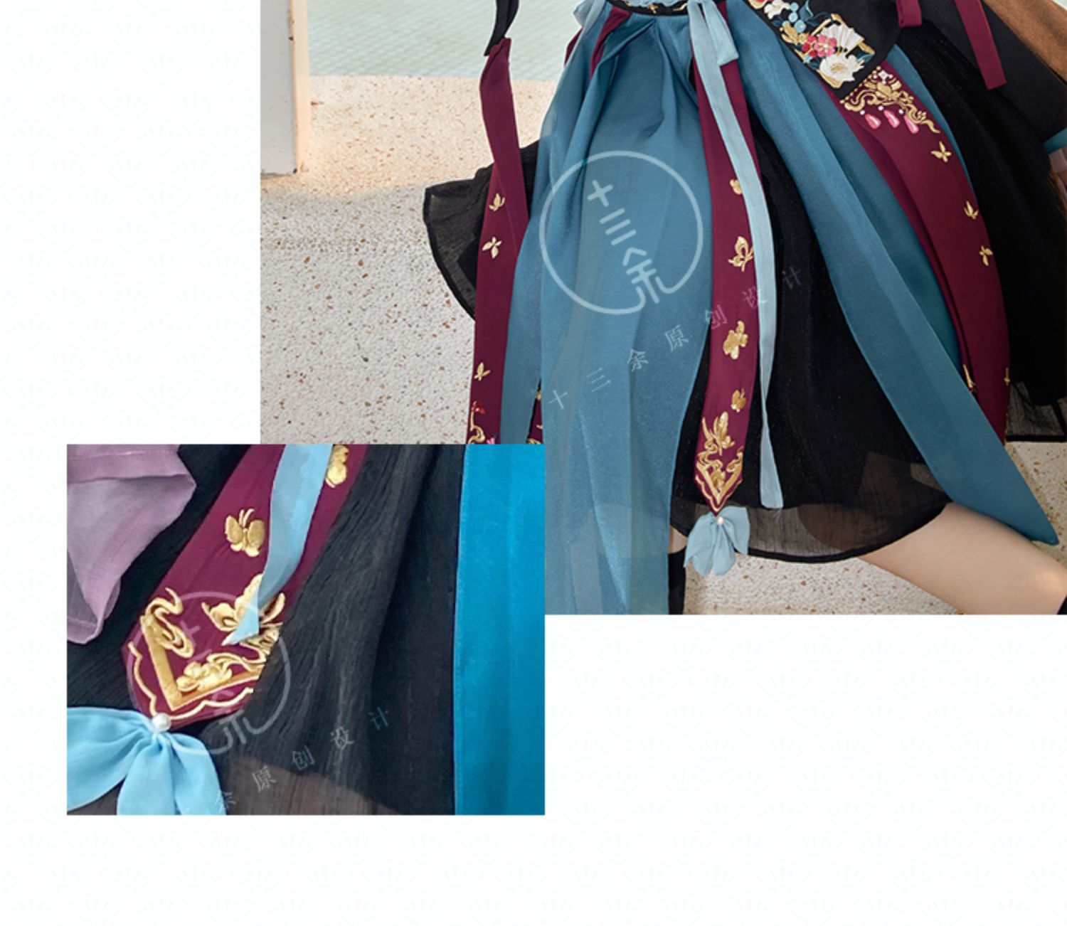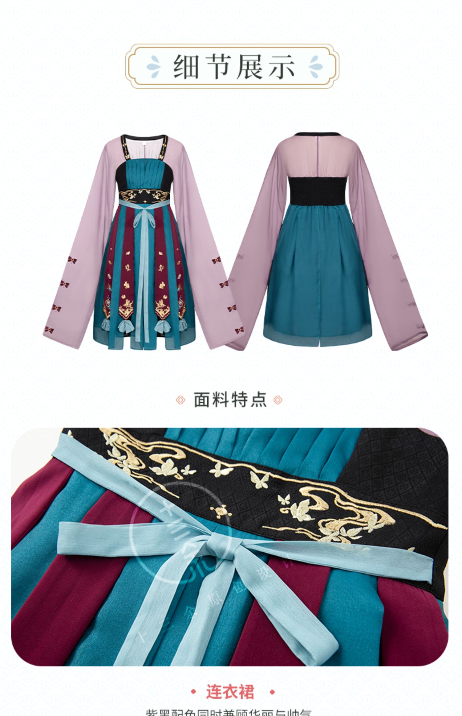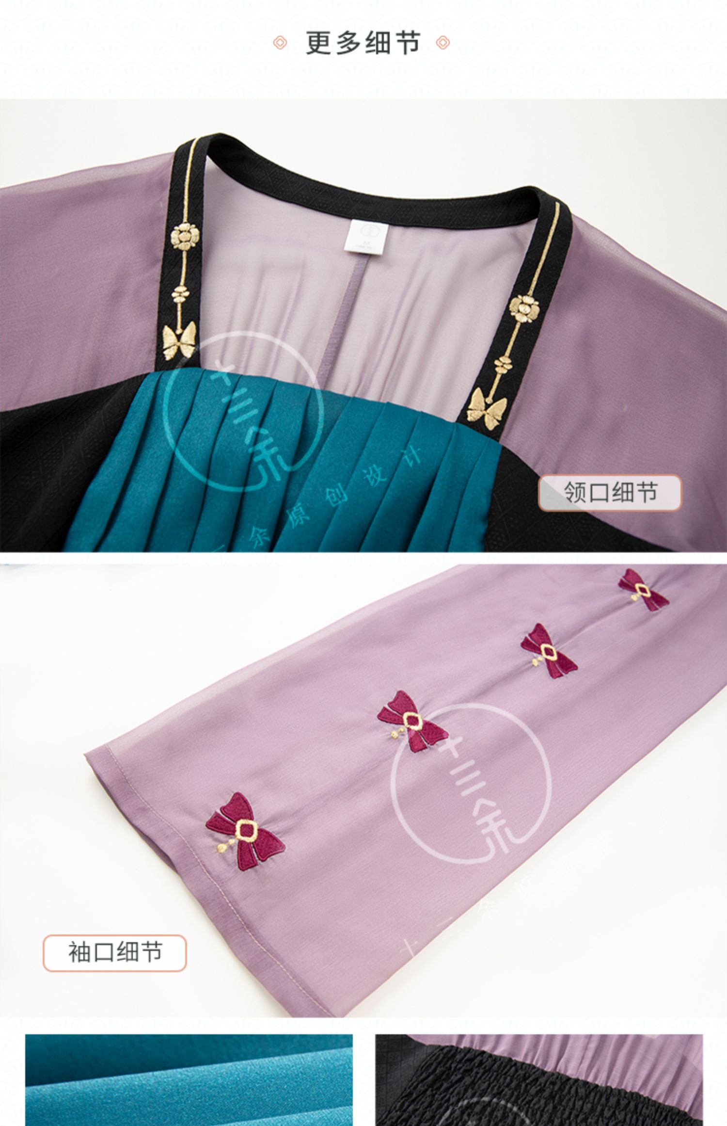 Hanfu is a handmade product, not a mass-produced product in a garment factory. In theory, there are no two completely identical Hanfu. The product details page only shows the shape of this Hanfu, especially the embroidery on the Hanfu. It is impossible for tailors to make it 100% the same. Consumers who cannot accept this please do not buy it