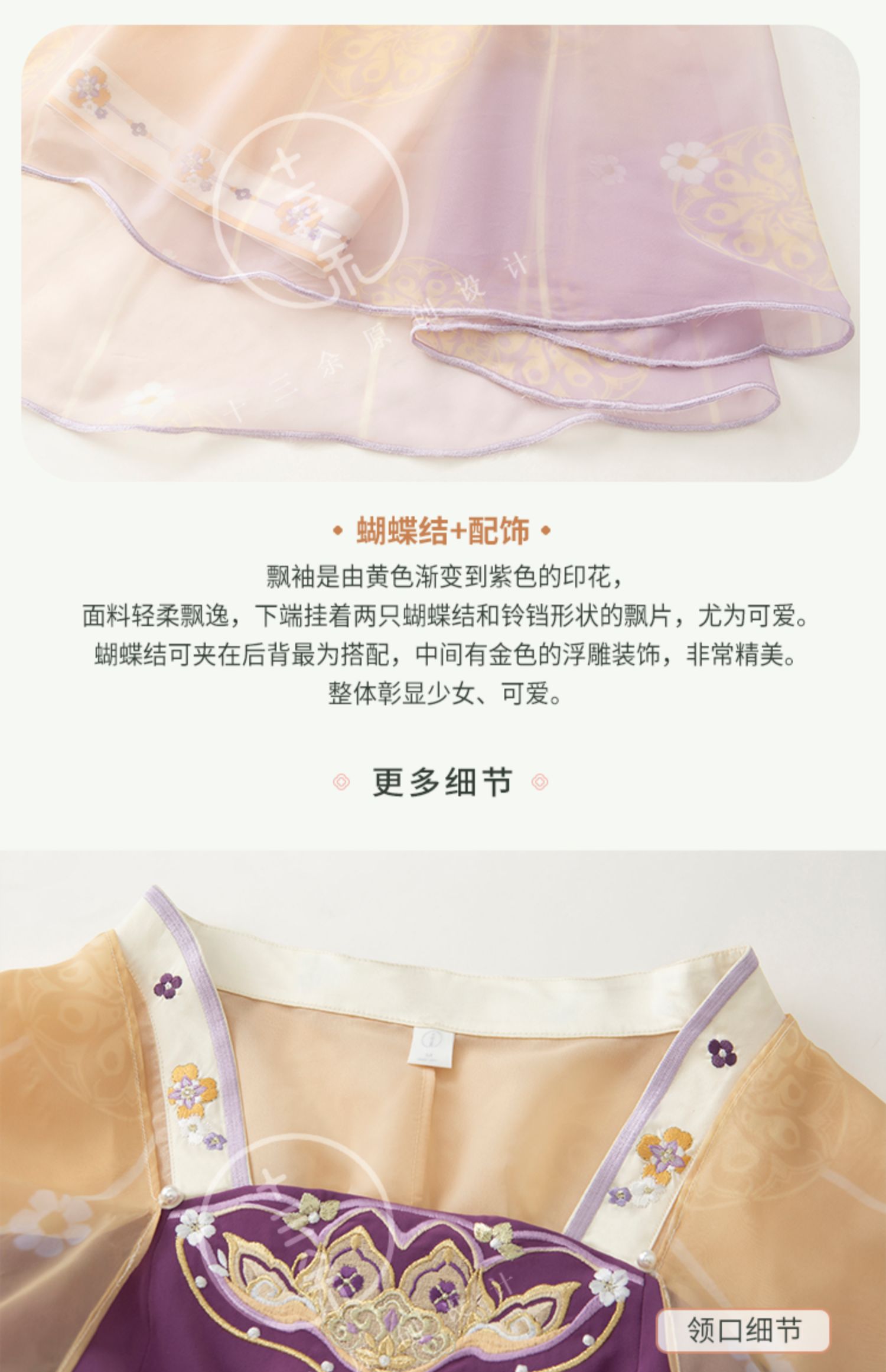 Hanfu is a handmade product, not a mass-produced product in a garment factory. In theory, there are no two completely identical Hanfu. The product details page only shows the shape of this Hanfu, especially the embroidery on the Hanfu. It is impossible for tailors to make it 100% the same. Consumers who cannot accept this please do not buy it