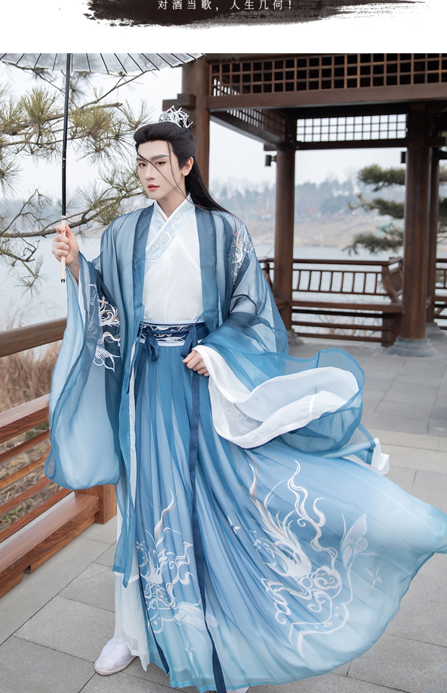 The Basic Forms Of Men'S Hanfu Mainly Include The Upper Garment And Lower Garment System And The Garment-And-Garment System. The Upper Garment And Lower Garment System Means That The Upper Garment And Lower Garment Are Worn Separately. The Upper Garment Is Mostly A Robe Or Shirt With A Cross Collar And Right Lapel, While The Lower Garment Is A Skirt Or Pants. The Garment-And-Garment System Means That The Upper Garment And Lower Garment Are Connected As One, Such As A Deep Garment And A Robe.