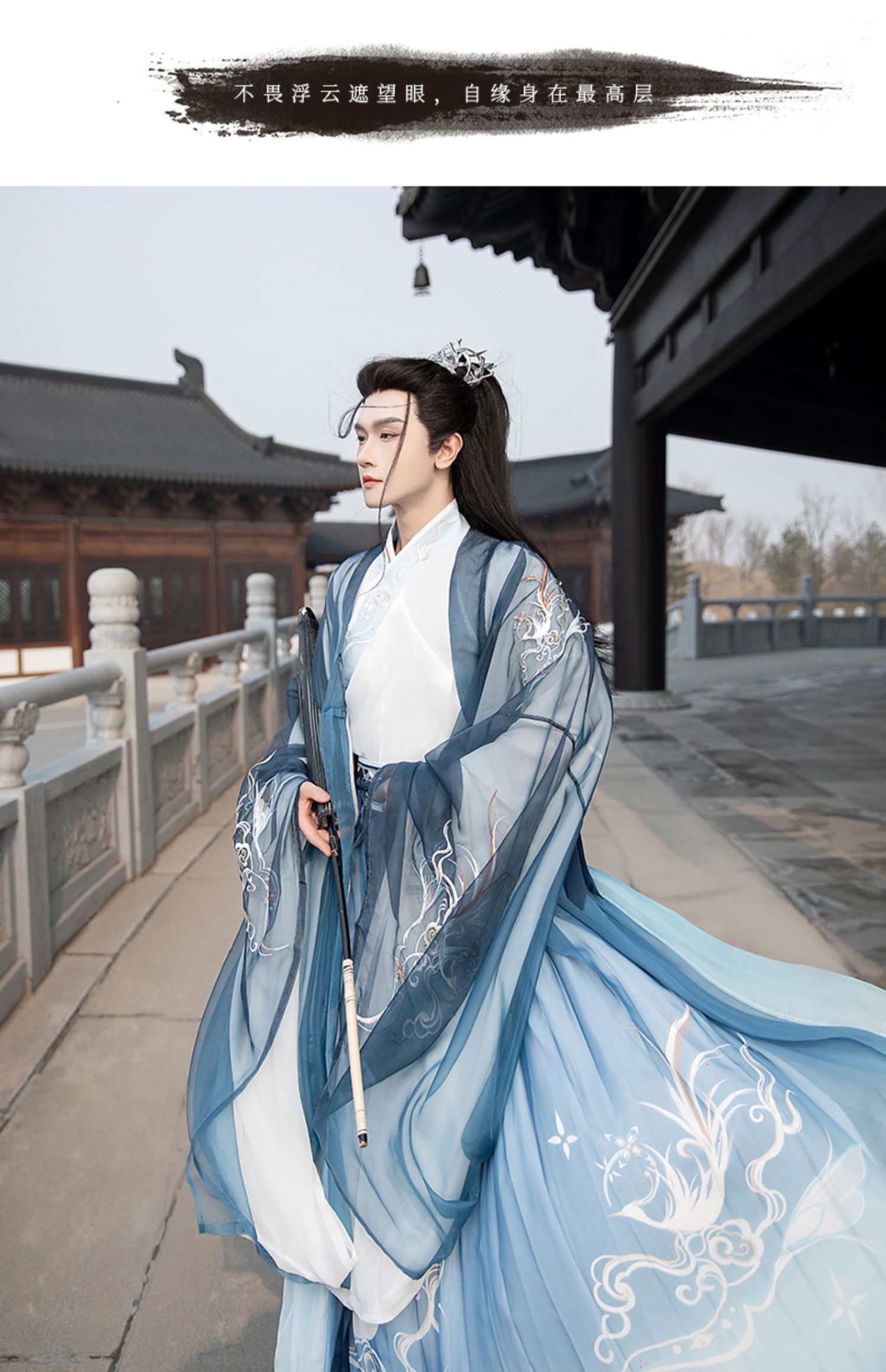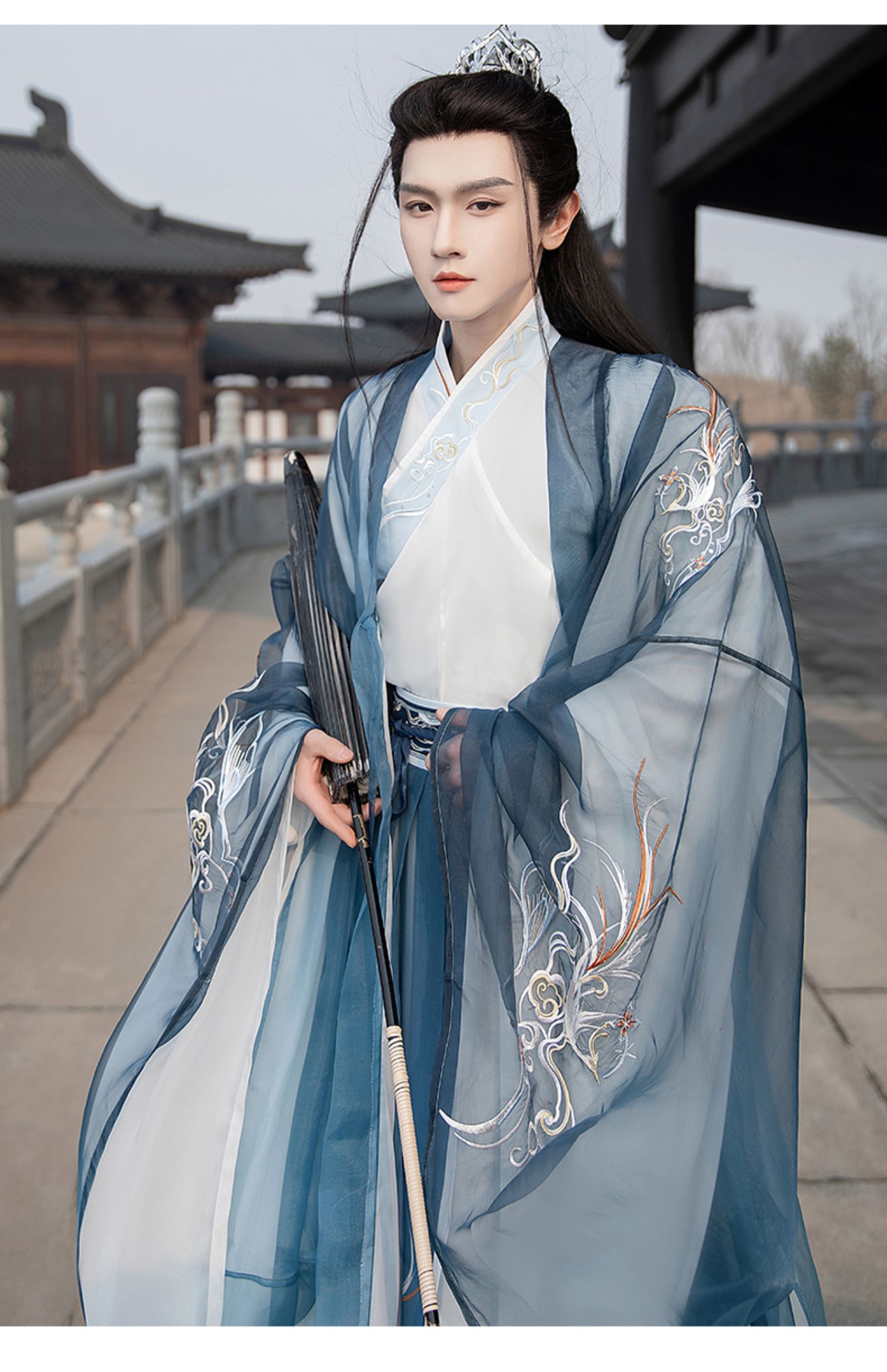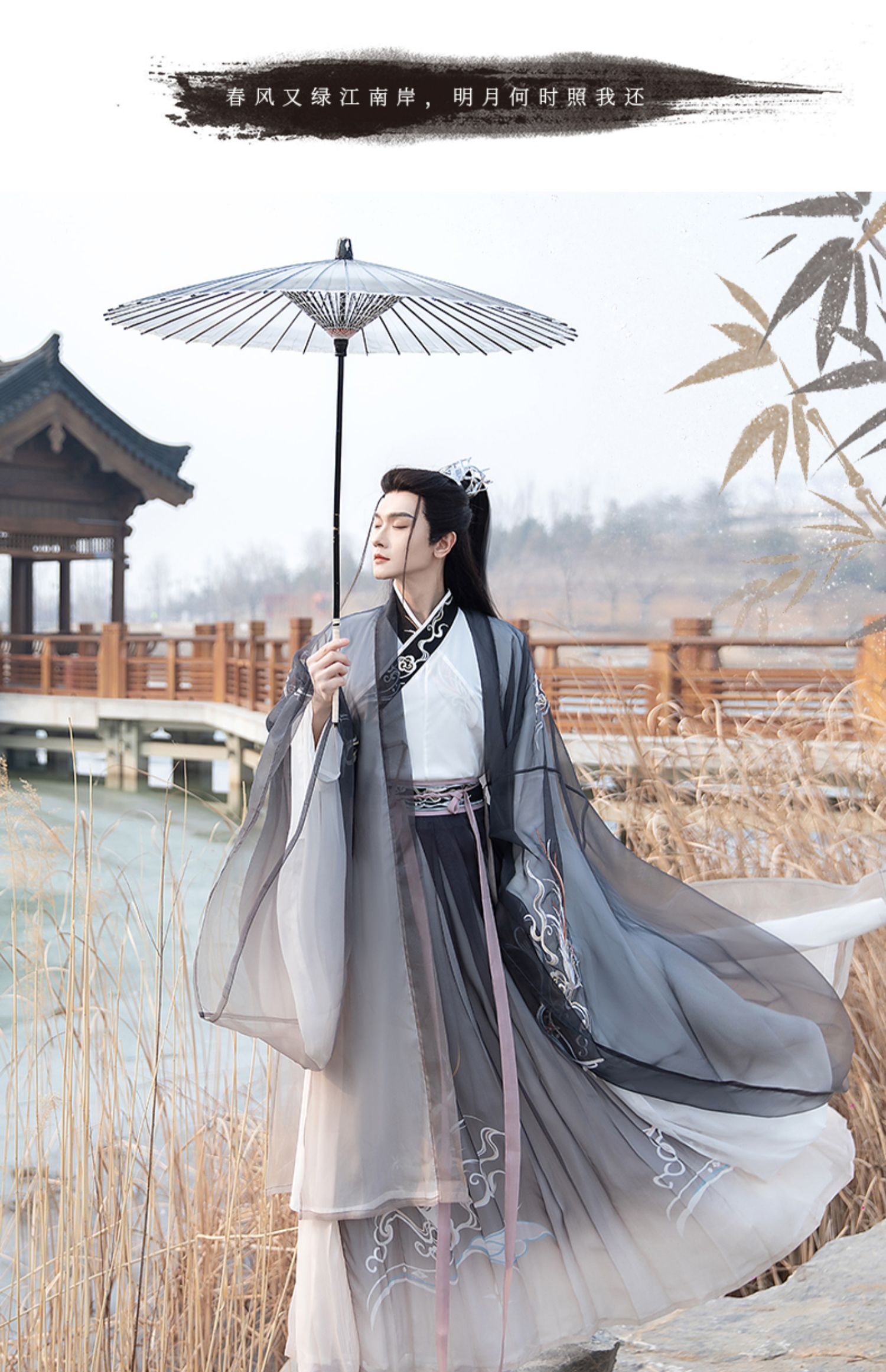 Men'S Hanfu Should Be Well-Fitted, Loose And Comfortable. Generally, The Sleeves Of Men'S Hanfu Should Be Longer Than The Fingertips And The Body Should Be Longer Than The Ankles, With The Upper Of The Shoes Slightly Exposed And Not Dragging On The Ground. The Size Should Be Wide And Fit, Not Too Tight. In Addition, The Tailoring Of Hanfu Should Have Technical Features Such As The Front And Back Center Seams And Sleeve Joints To Reflect Its Unique Production Process And Aesthetic Value.