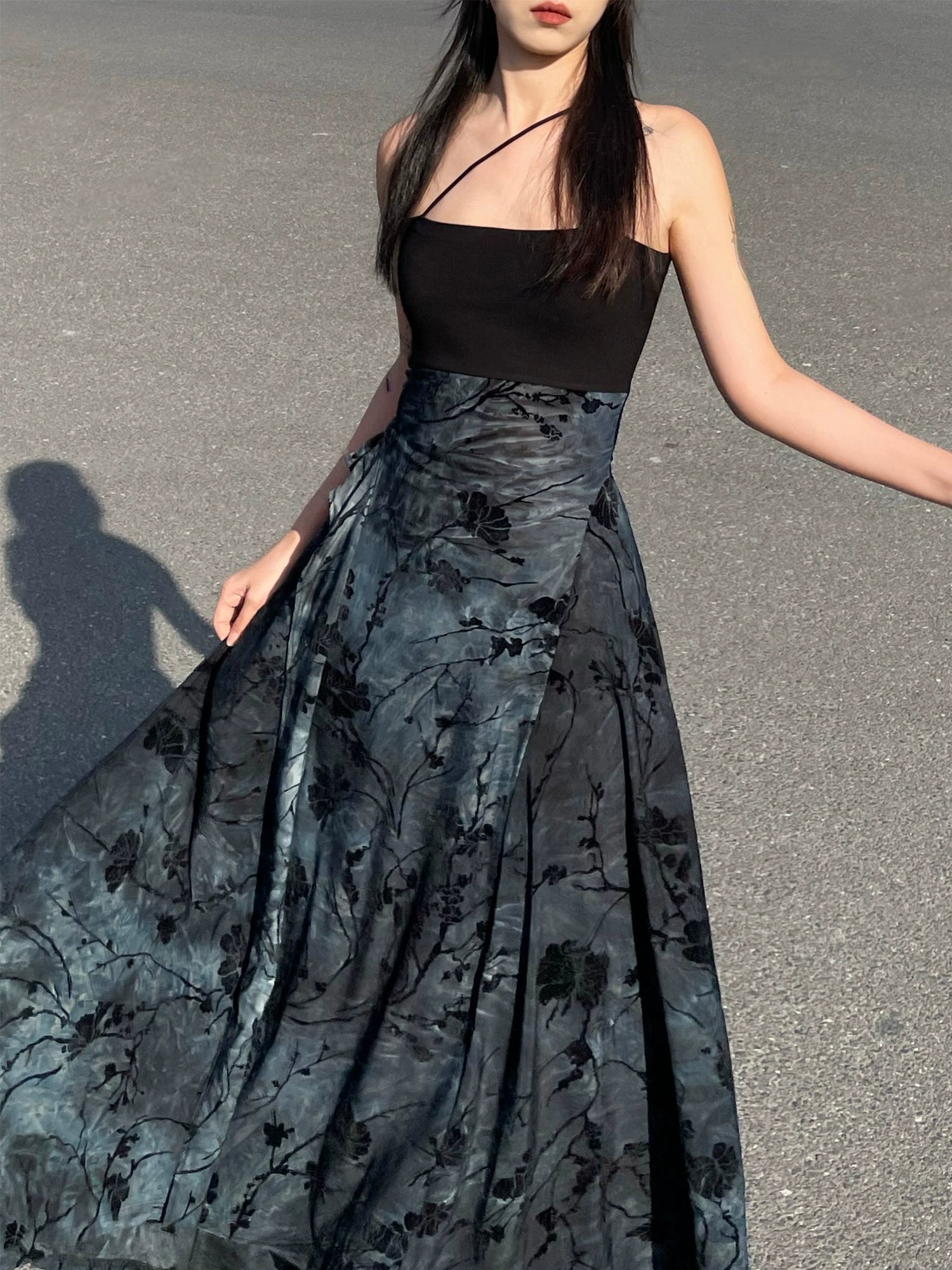 Embrace the serene beauty of traditional Chinese ink wash paintings with our retro-inspired spaghetti strap dress featuring delicate plum blossom motifs. Crafted with a blend of classic elegance and modern flair, this long dress exudes a sense of tranquility and sophistication.